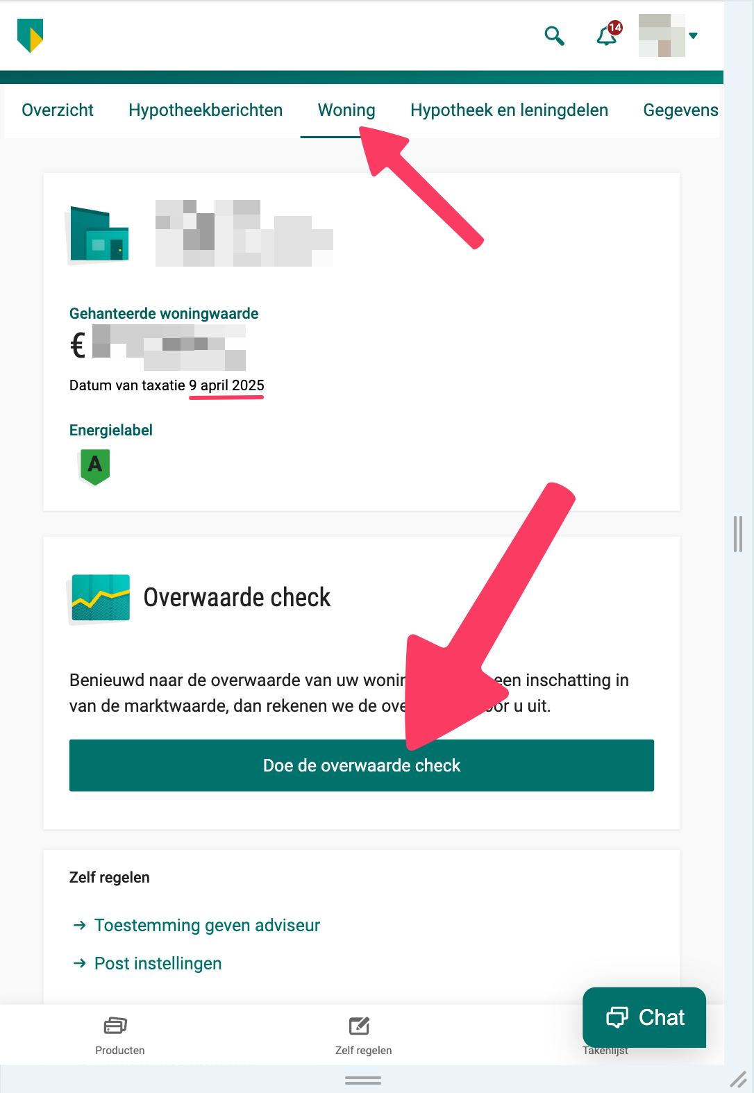 Для этого идем в Overzicht Ипотеки, затем кликаем на нашу недвижимость и затем нажимаем на Overwaarde check.