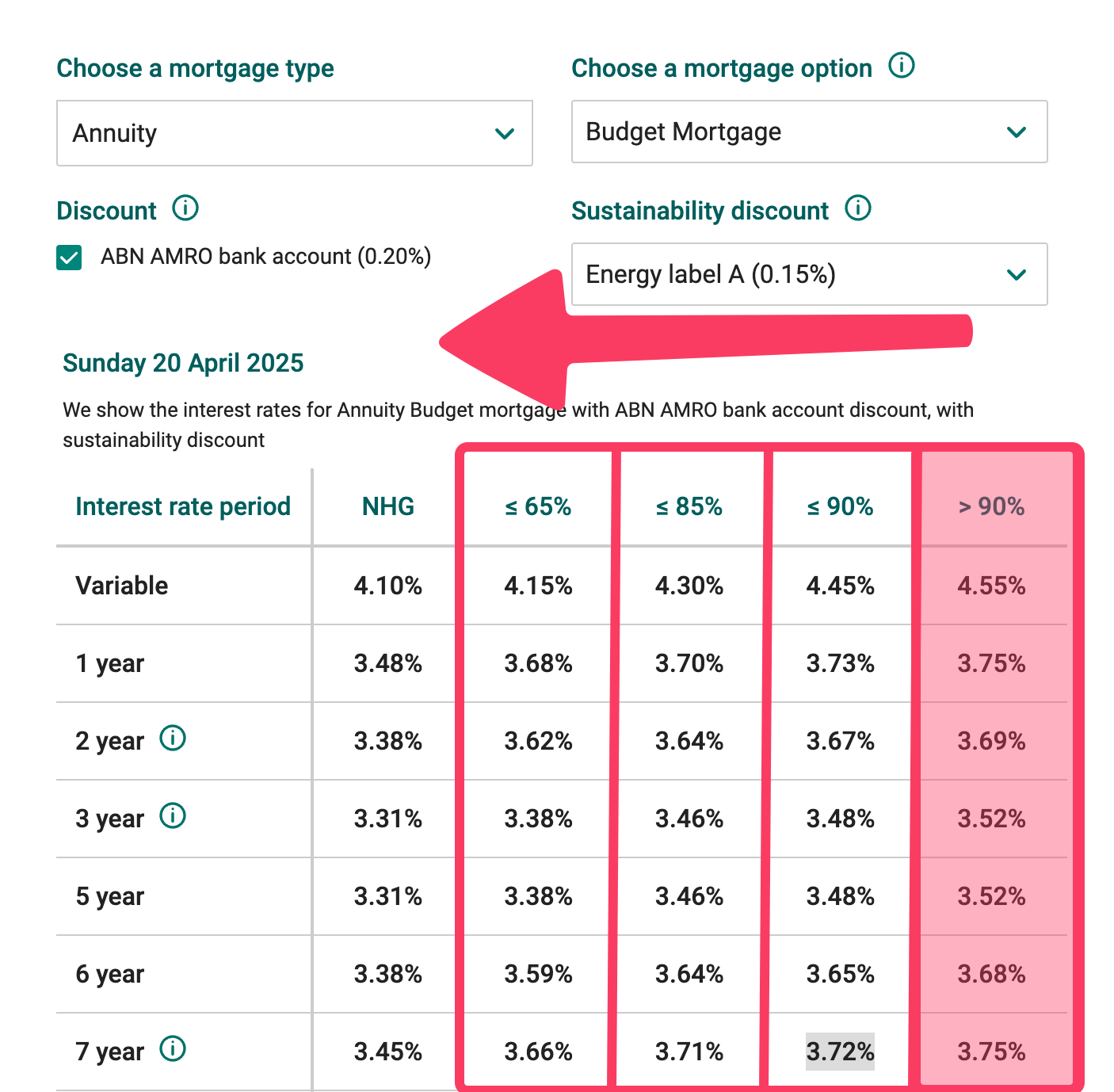 Там 4 брекета в зависимости от суммы ипотеки относительно текущей рыночной стоимости дома: